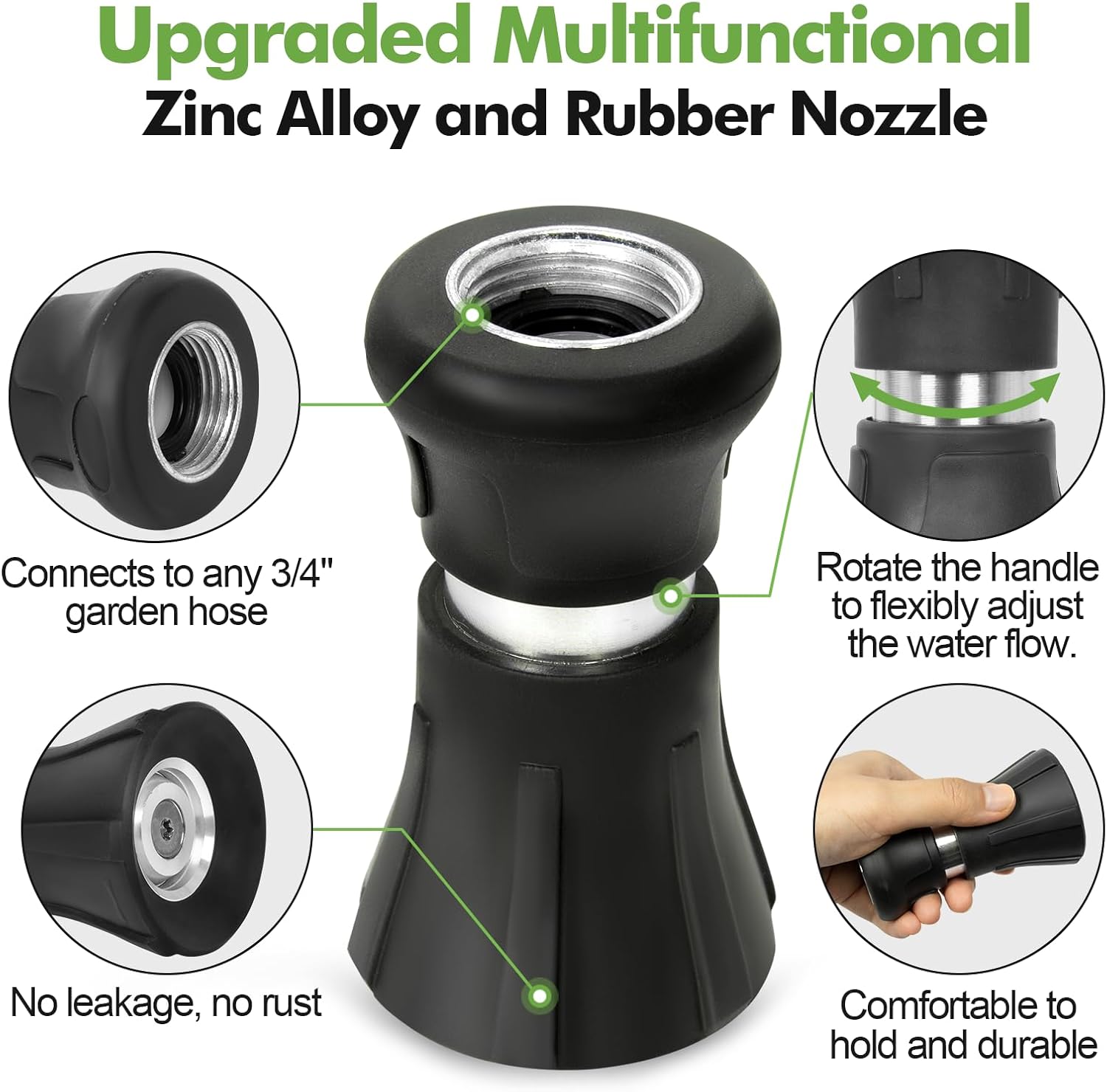- The nozzle is made of high quality zinc alloy and rubber can be connected to any standard US 3/4" garden hose.