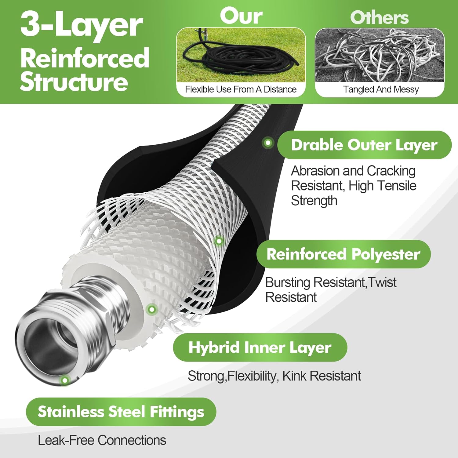 - Expertly developed hybrid material from rubber and polymer, 3-Layer reinforced structural rubber hose is extremely tough.