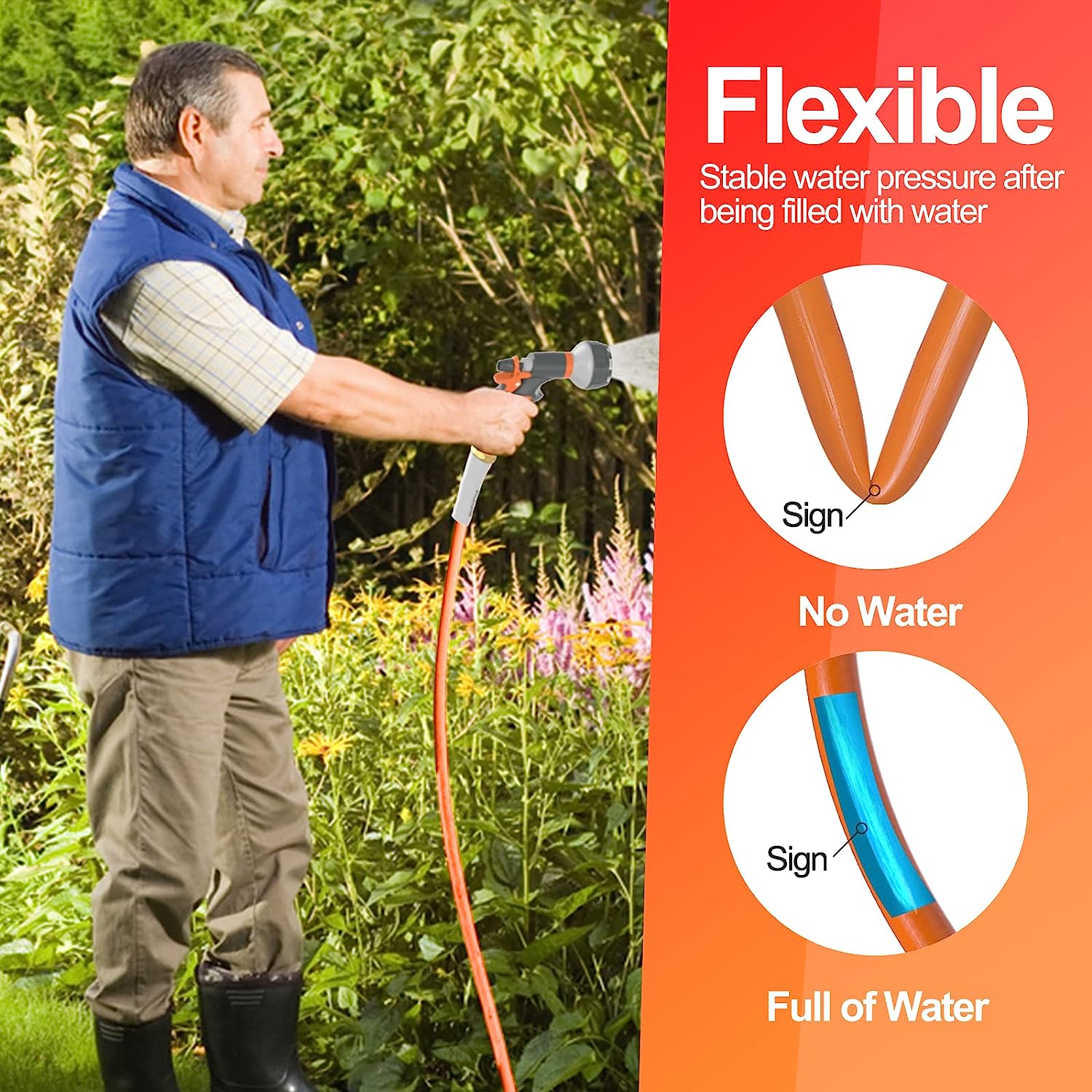 - Special flexible material makes water hose easy to uncoil, no memory, no knots, easy to handle.