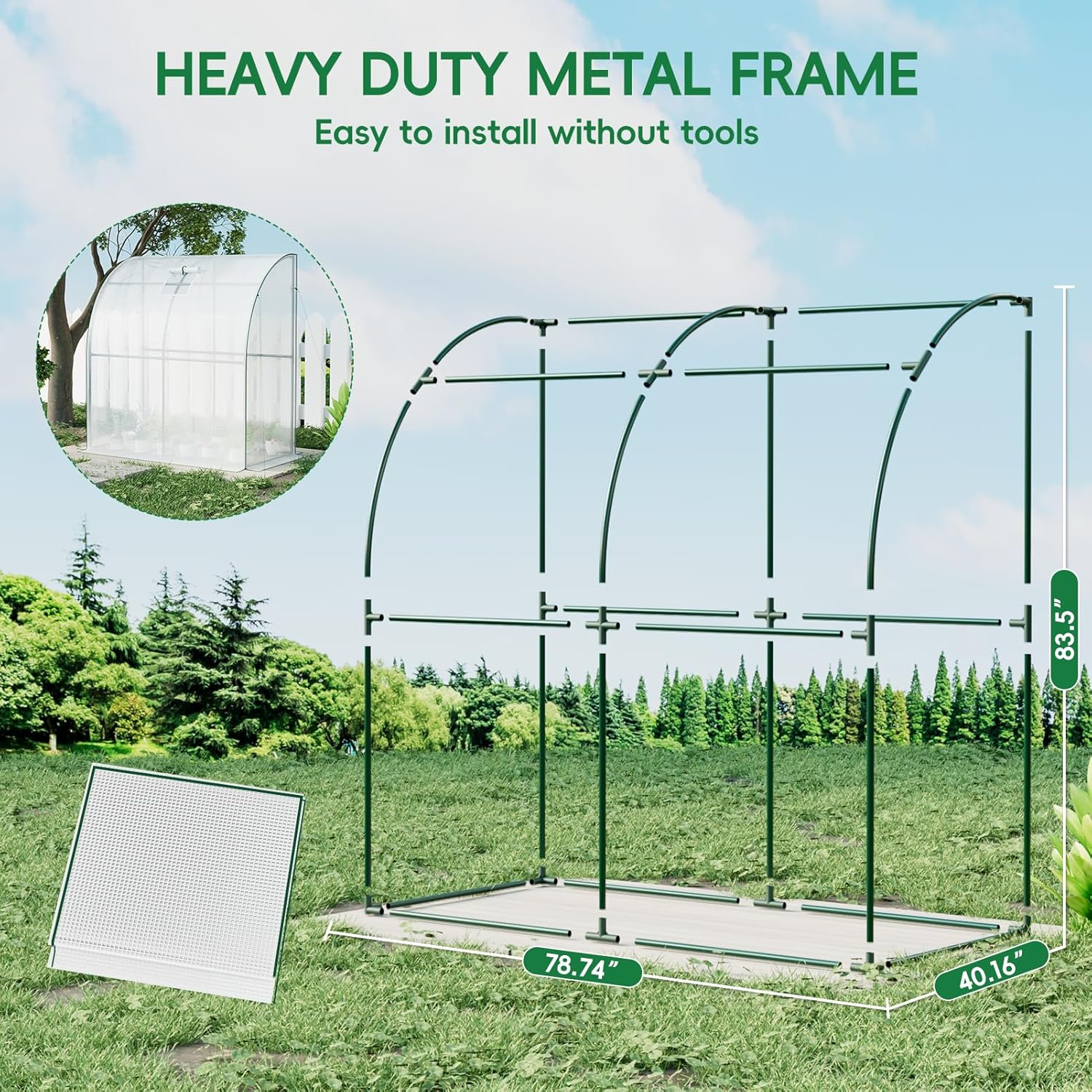 - Easy Movement and Assembly: All components can be disassembled without the need for any tools. So you can install it anywhere you want and move it when the seasons change. The size of the walk-in wall greenhouse is 79 x 40 x 83inch, providing sufficient growth space for seedlings, flowers, vegetables and fruits