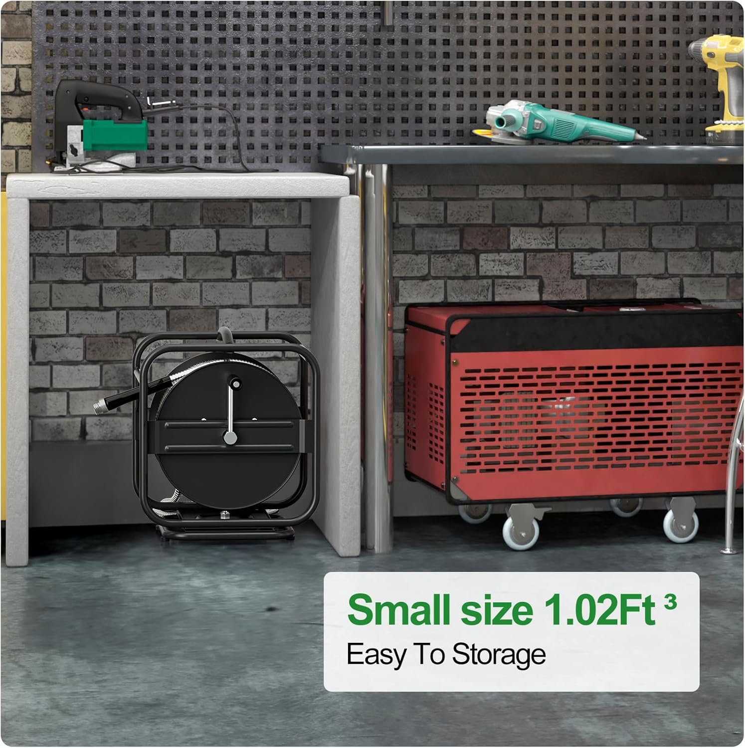 - 1.02Ft ³ wall mounted/floor outside hose reel, easy to remove hose and reel combo (hose with reel) from bracket for cold winter storage.