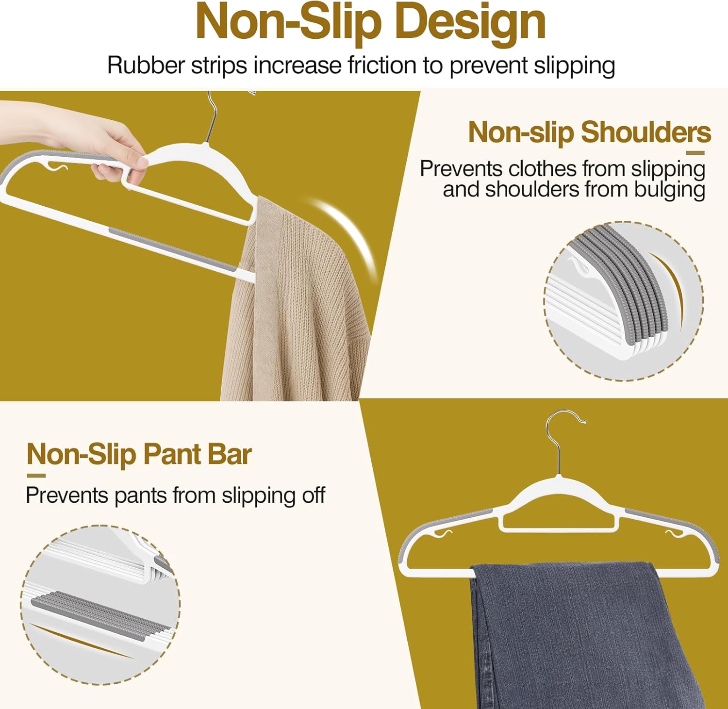 - Space Saving & Anti-Scratch: This 0.2”slim hanger maximizes closet space and is a great closet organizer. The scratch-resistant beads on the hooks won't stain or even damage your valuable clothing, ensuring your fabrics stay pristine