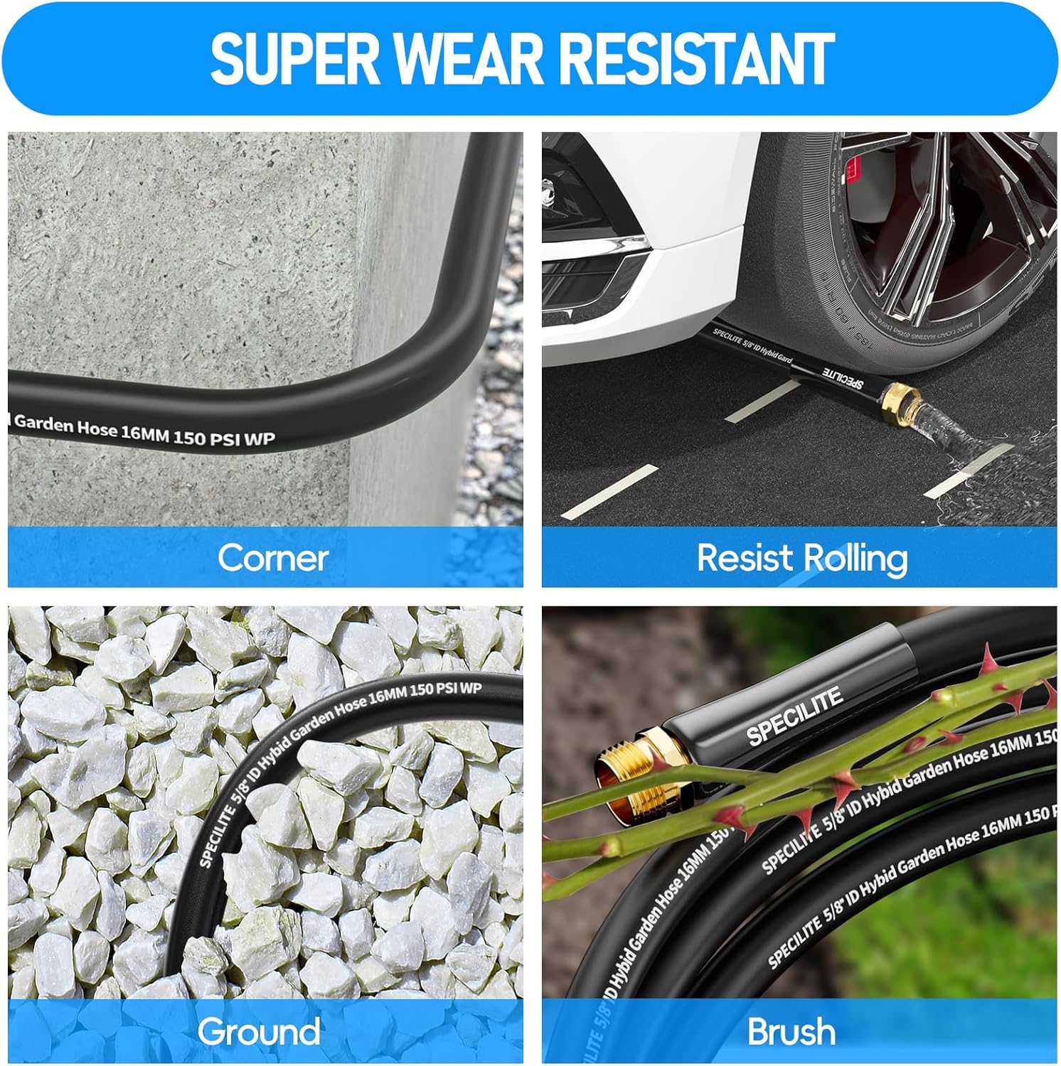 - NO KINK AND STURDY: The special flexible material makes this waterhose easy to uncoil with no memory, it will not kink when water is full in the rubber water hose which is easy to maneuverThe 3-layer reinforced structure rubber hose has extreme toughness, which can easily bypass trees, grass and walls