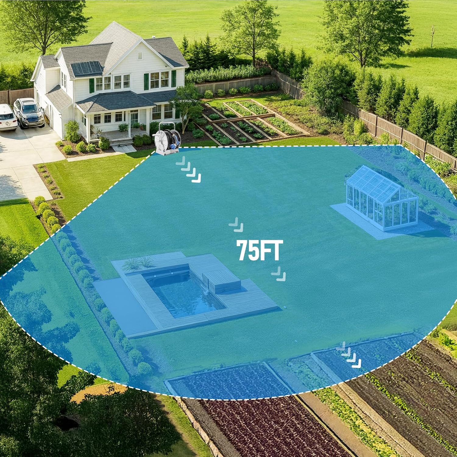 - COVER EVERY CORNER : Our hose reel comes with a 6 ft leader hose, and pre-installed with a 5/8'' 75ft hybrid rubber hose, which can cover every corner of your garden and complete daily cleanings and waterings.